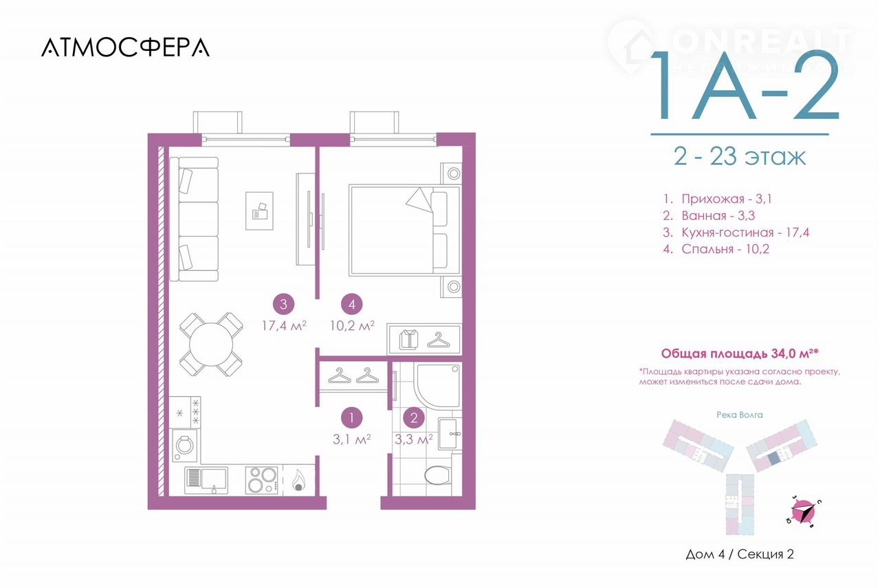 Общая площадь 34.2 м2
