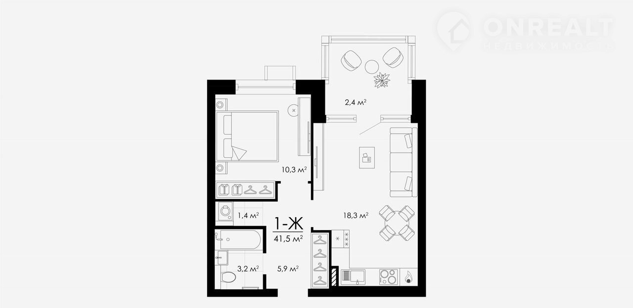 Общая площадь 41.5 м2