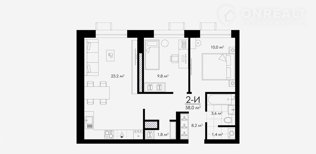 Общая площадь 58 м2