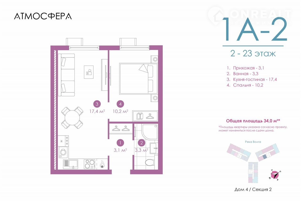 Общая площадь 34.2 м2