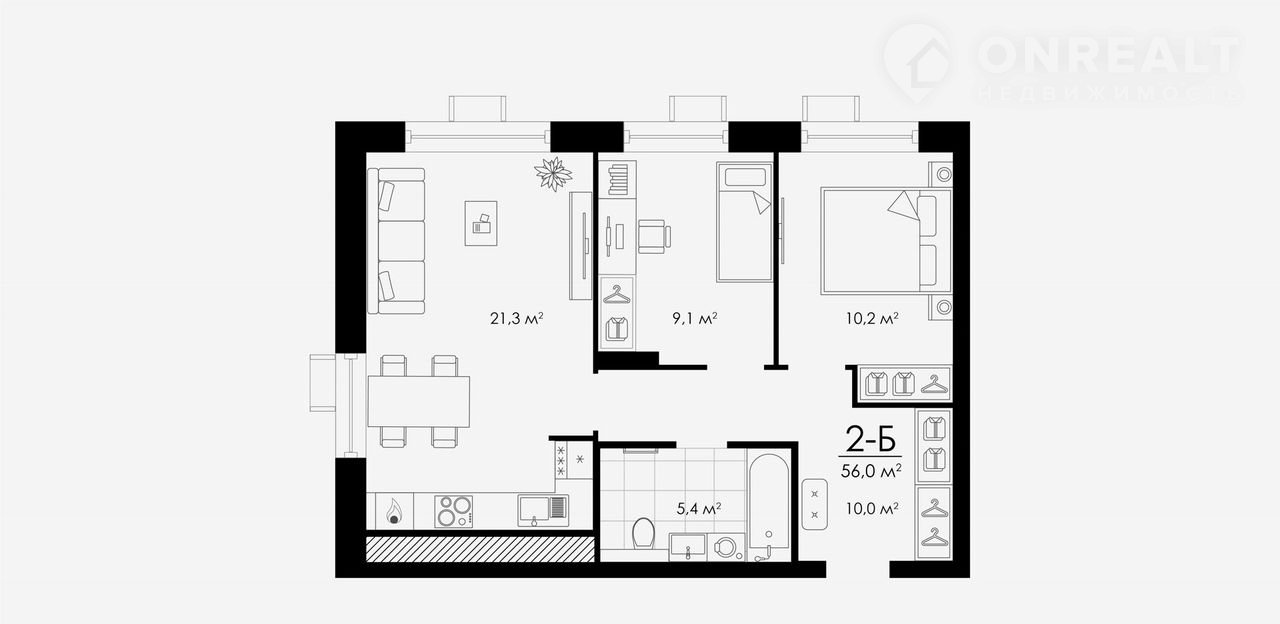 Общая площадь 56 м2