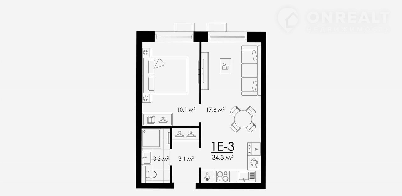 Общая площадь 34.3 м2
