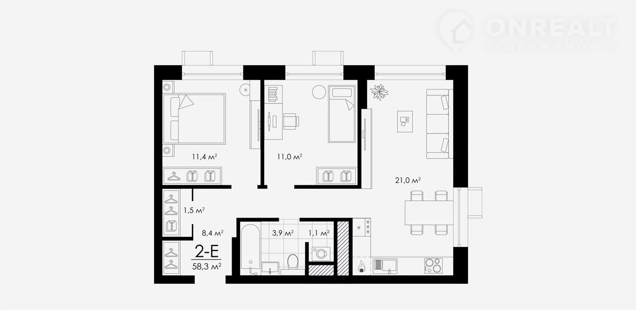 Общая площадь 58.2 м2