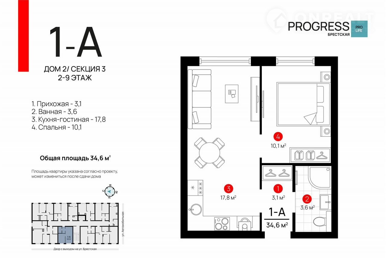 Общая площадь 34.6 м2