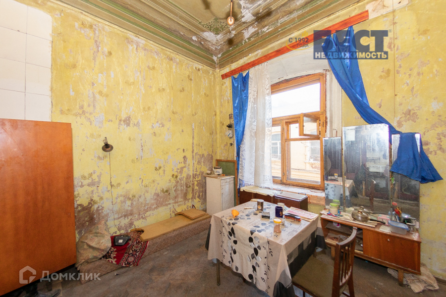 В квартире свое отопление, есть газ, вода. Высокий потолок – можно сделать второй этаж. Квартира полностью под ремонт.