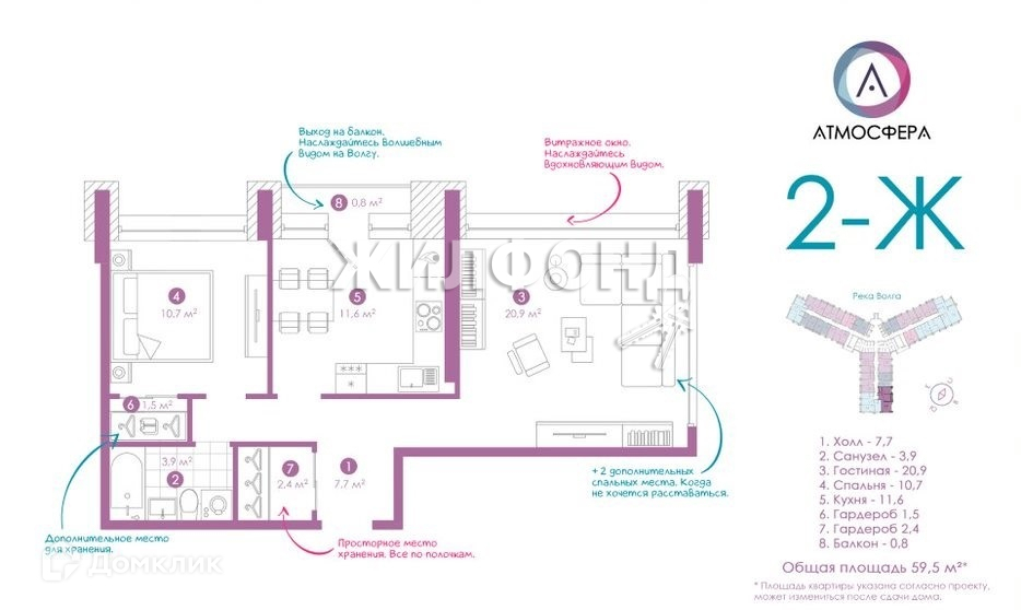 Общая площадь 59 м2