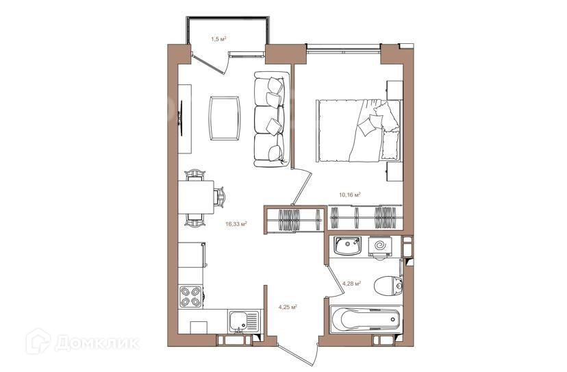 - Просторная кухня - гостиная 16,33 м2, с витражным выходом на балкон. Здесь вы сможете с комфортом готовить, встречать гостей и проводить вместе весело время.