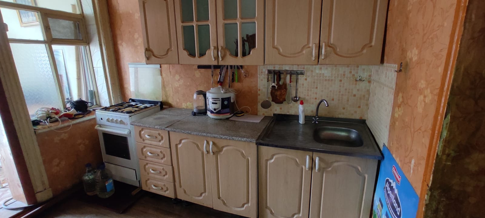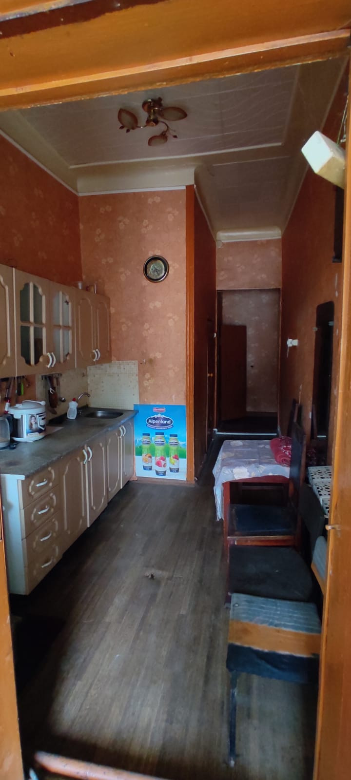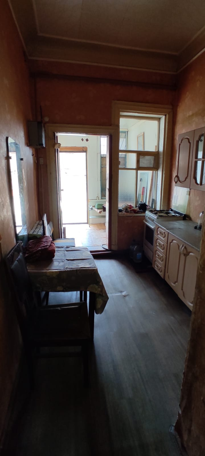 Квартира с центральным отоплением(очень тепло зимой),наличие холодной,горячей воды,слива.Не газифицирована.Выход окон на две стороны,зал проходной.Есть холодный предбанник.Потолки 3м 20 см.В среднем состоянии.Имеется сплит-система,пластиковые окна.В шаговой доступности остановка автобуса,дет.сад,школа,ж/д станция Астрахань-2.Во дворе кирпичный сарай.
