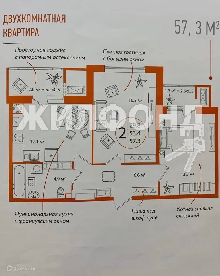 Общая площадь 54 м2