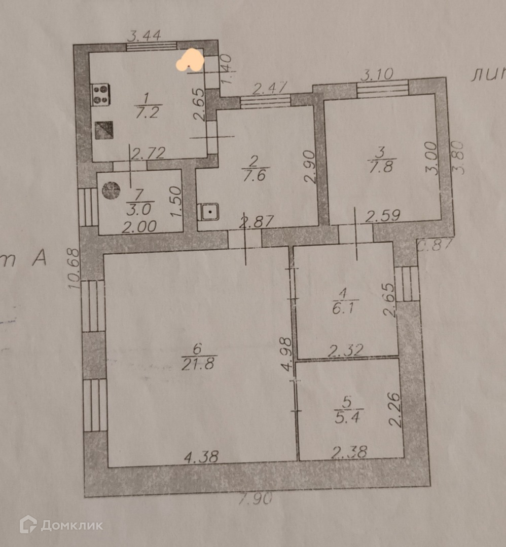 4-комнатная квартира, 58.9 м2, этаж 1 / 1, на продажу в Астрахани, 2-я Бондарная улица, 3