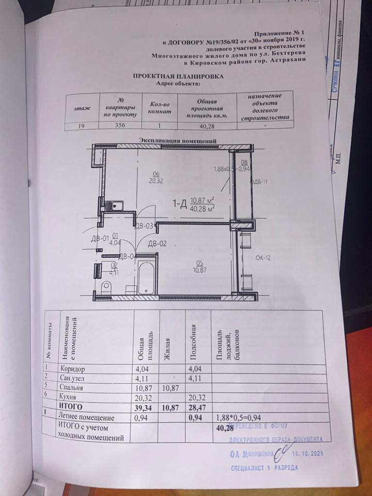 1-комнатная квартира, 40.28 м2, этаж 19 / 19, на продажу в Астрахани, улица Бехтерева