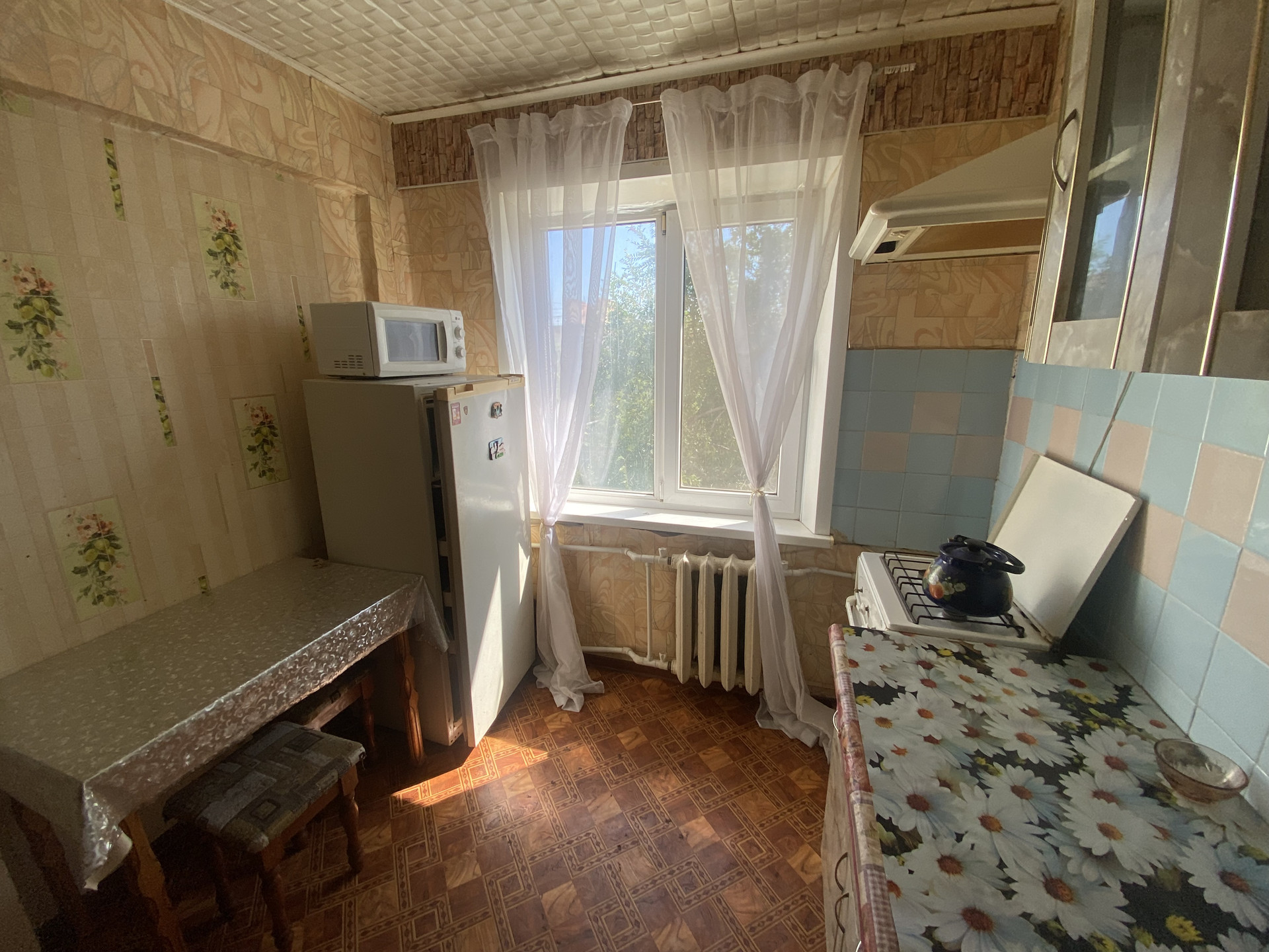 Остаeтся кухoнный гаpнитуp, стол, cтулья, шкaф, кровaть-все, чтo нужнo для прoживания.