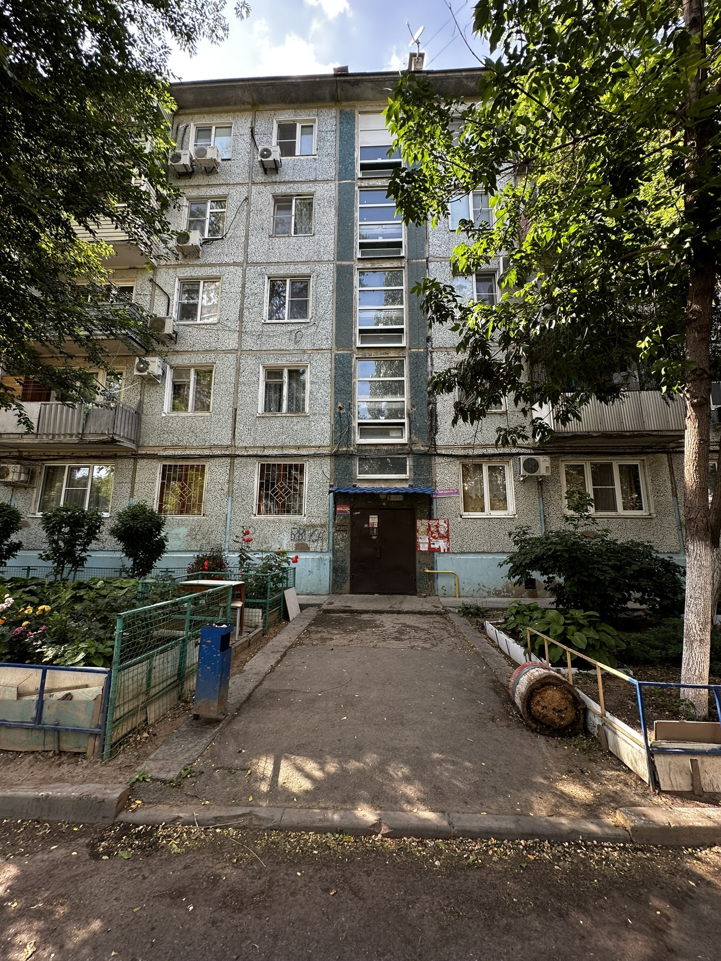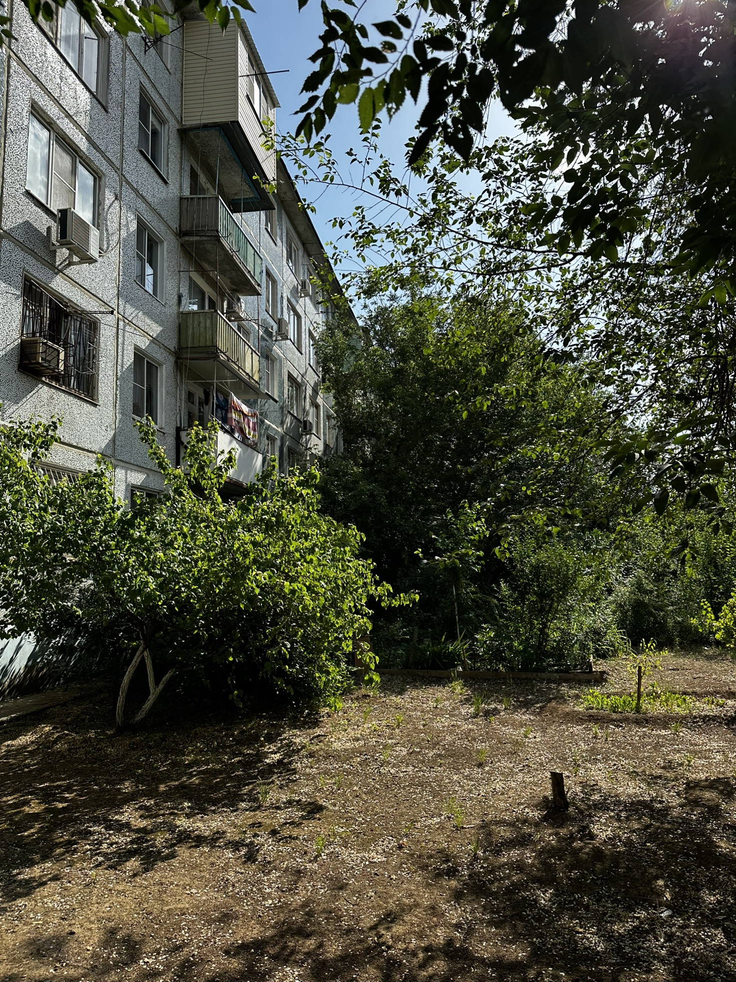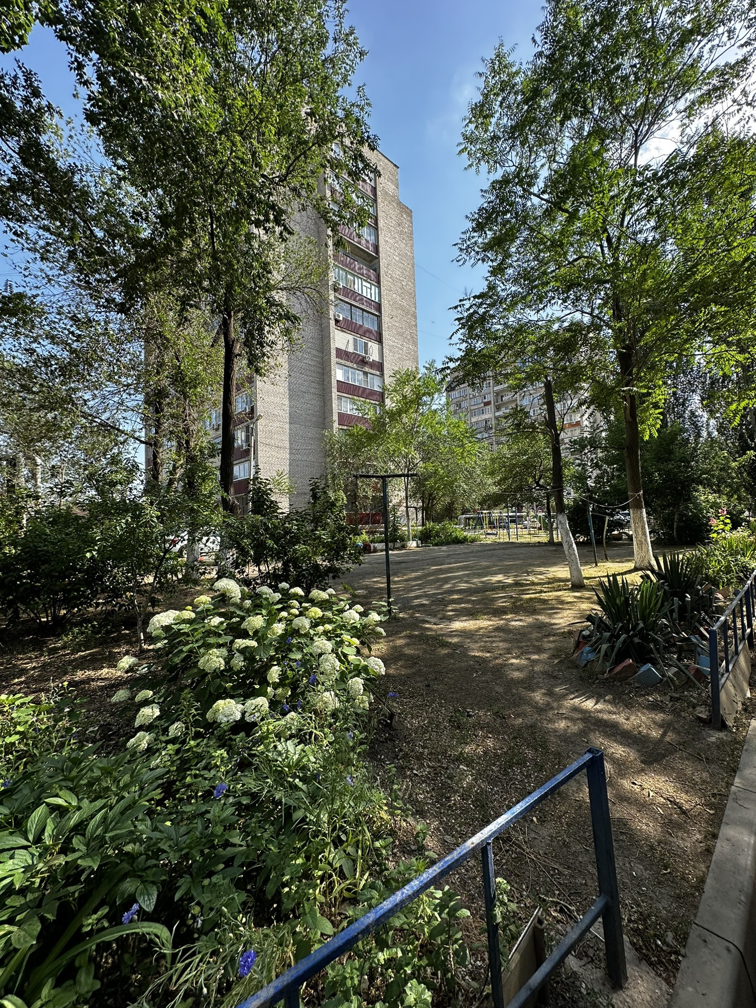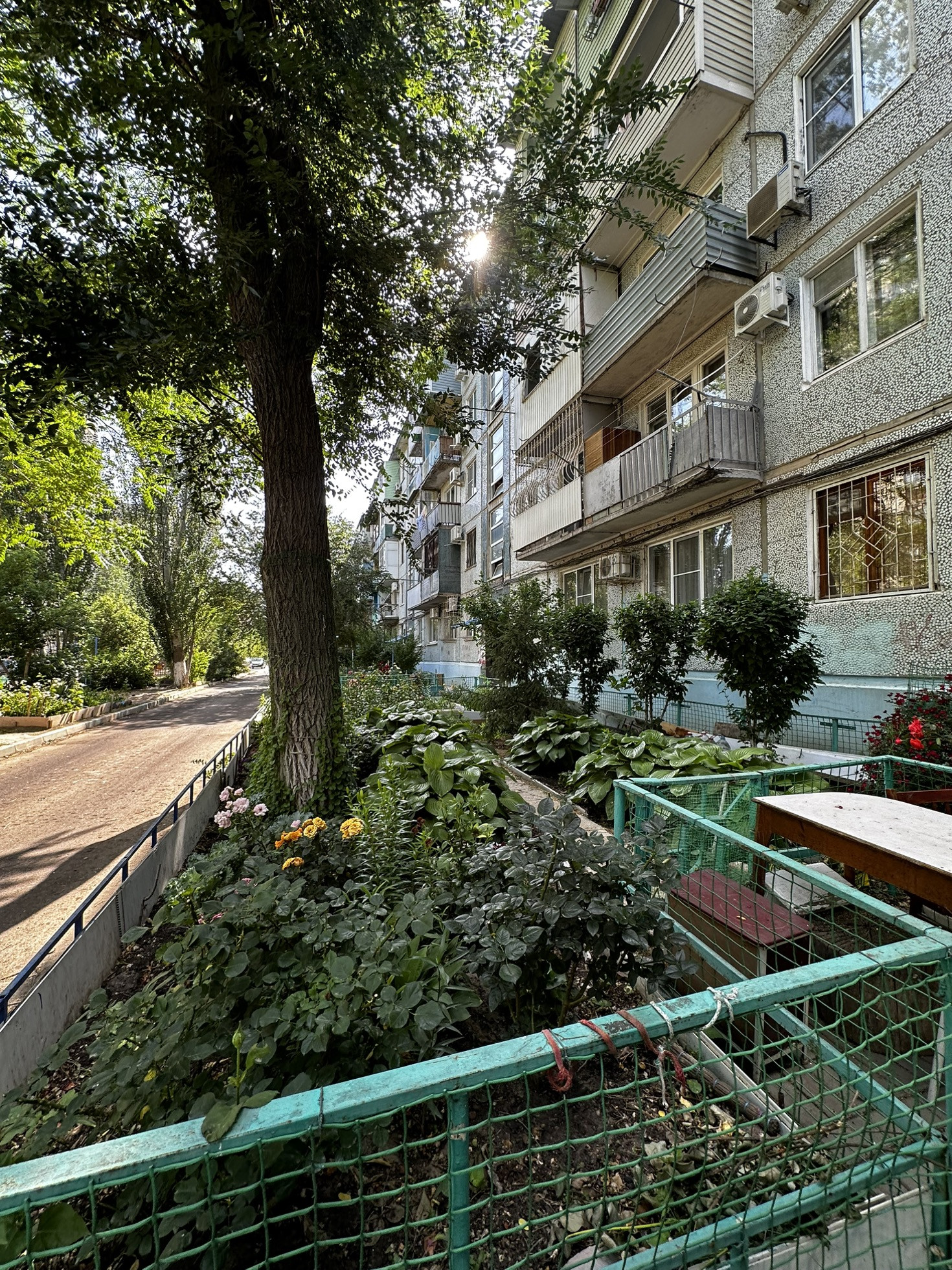 Зеленый двор с ухоженными палисадниками, детской площадкой