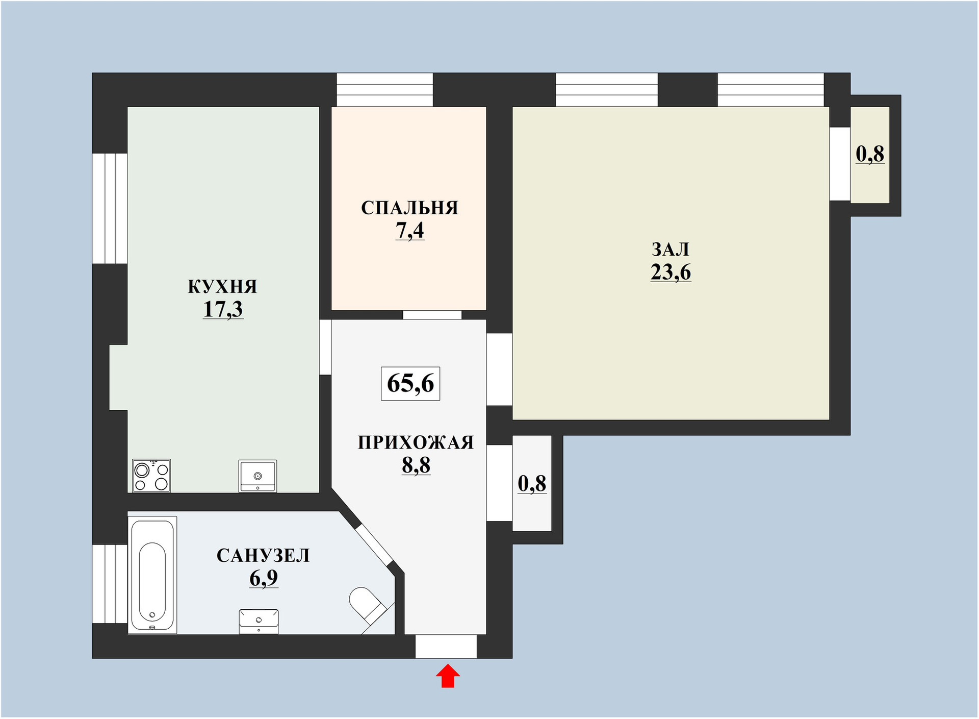 Общая площадь 65.6 м2