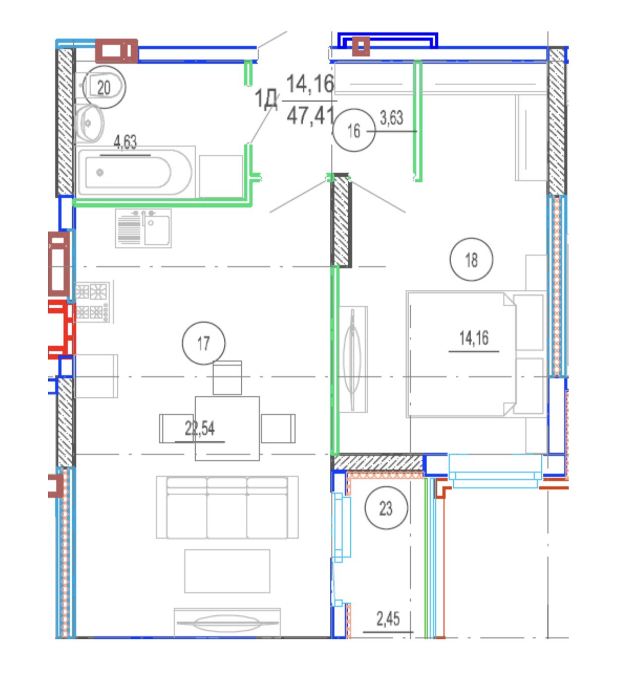 Общая площадь 47.41 м2