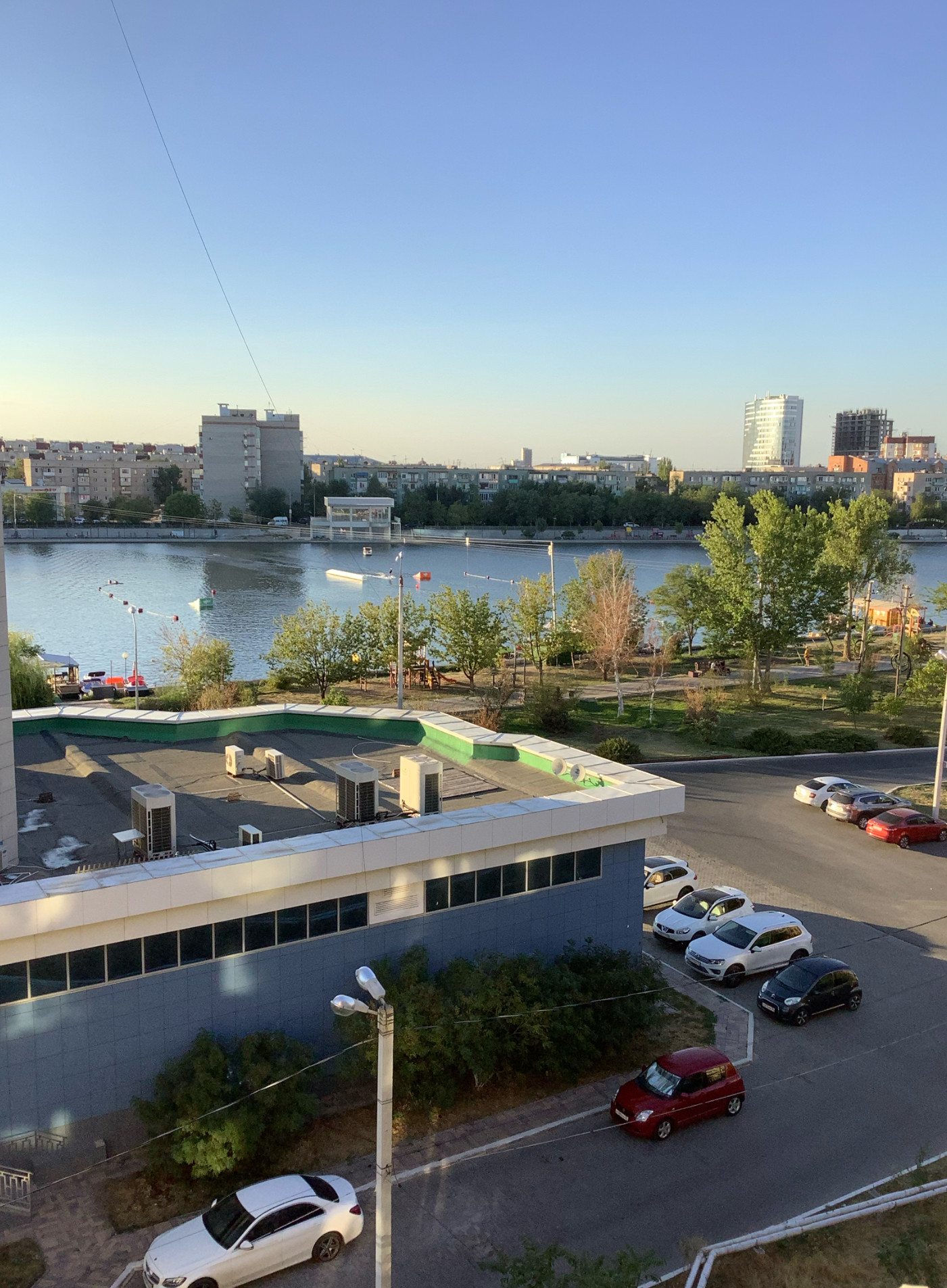 С одной стороны рядом храм св.Владимира, далее Татар-базар, с другой стороны Амурский бульвар с магазинами, одинаковое расстояние до мостов.