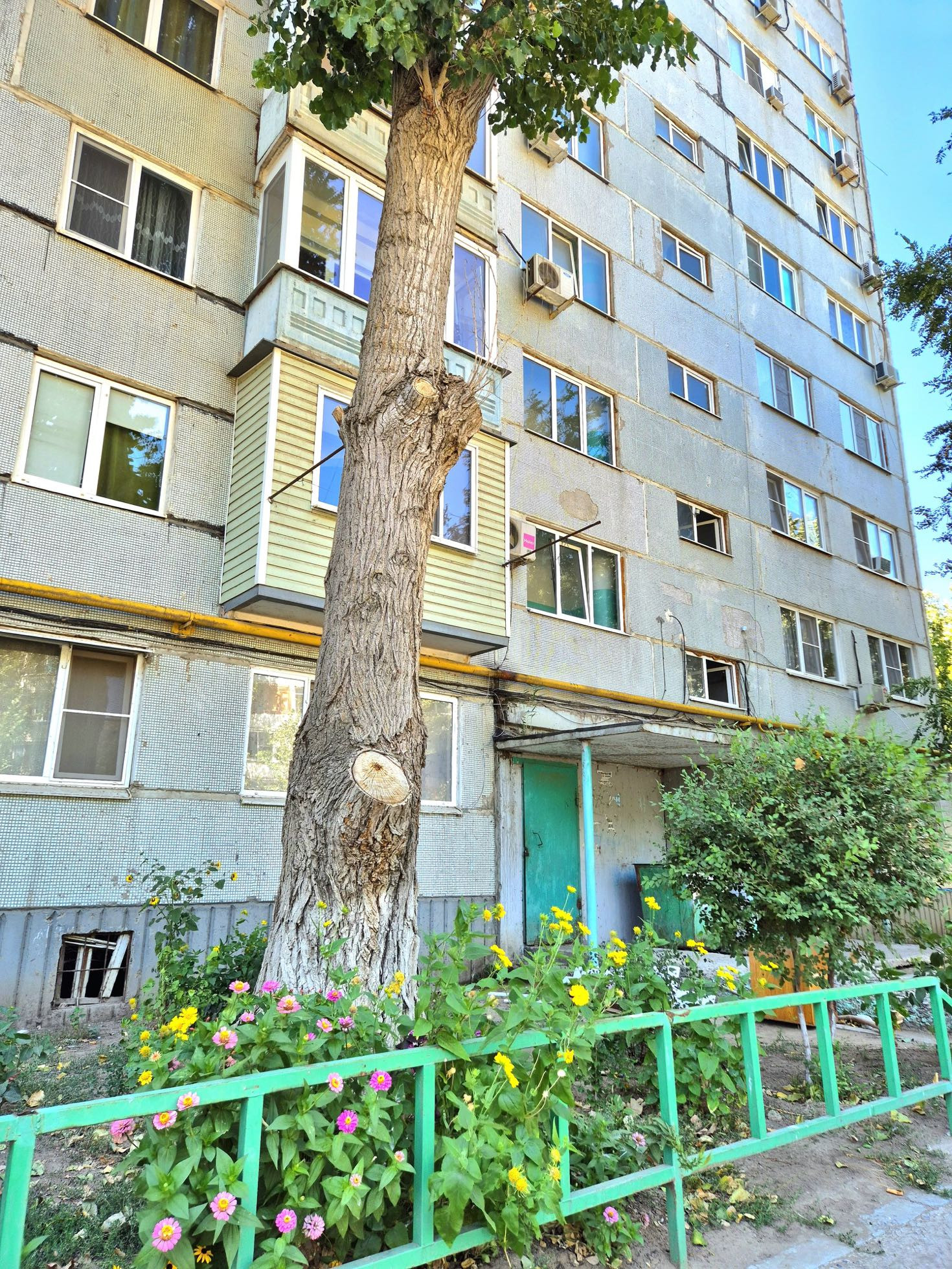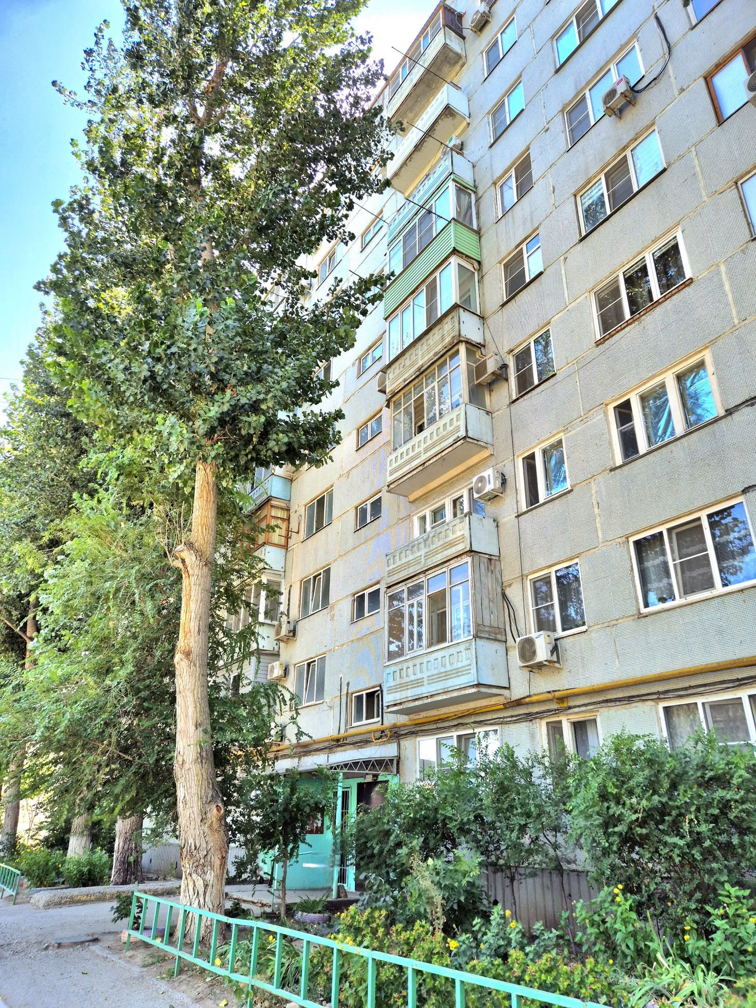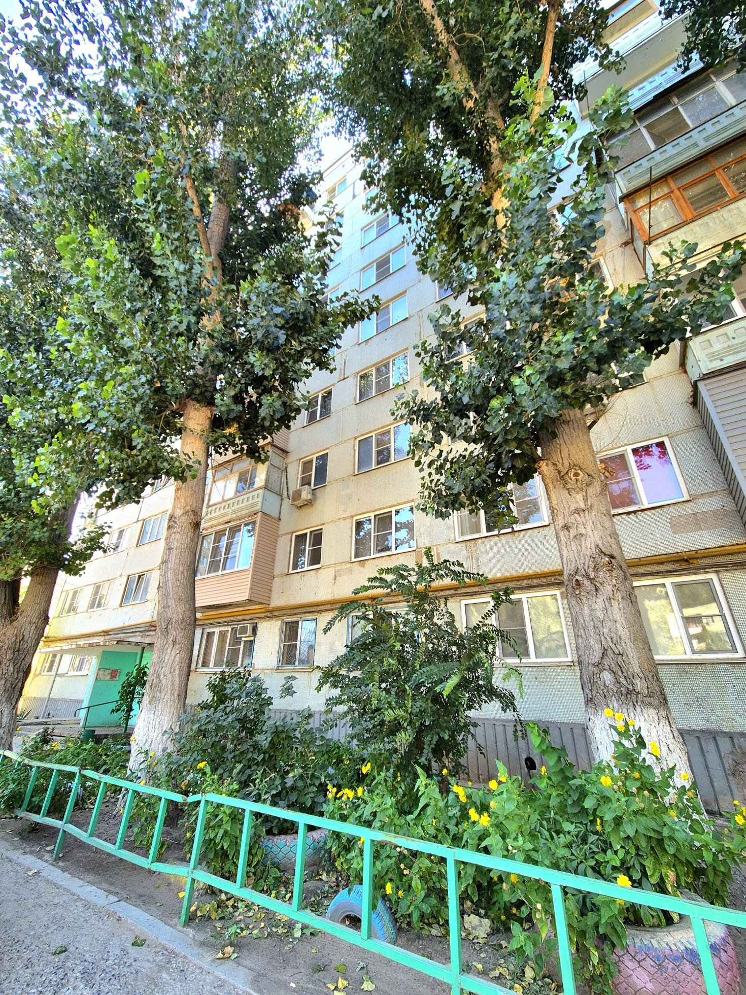 Зеленая ухоженная дворовая территория, детская площадка. Во дворе всегда имеются парковочные места.
