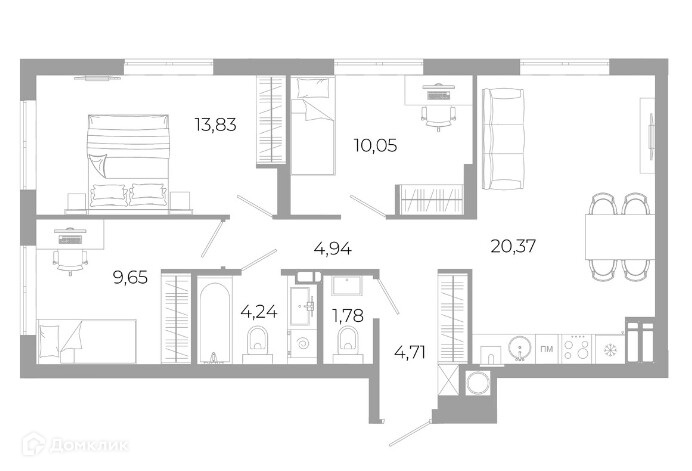 Квартира расположена на 14 этаже с 3 изолированными спальнями( 14, 10 и 10 кв.м) и большой кухне-гостинной 20 кв.м. КЛАДОВКА В ПОДАРОК на этаже. Стоимость ниже чем у застройщика.