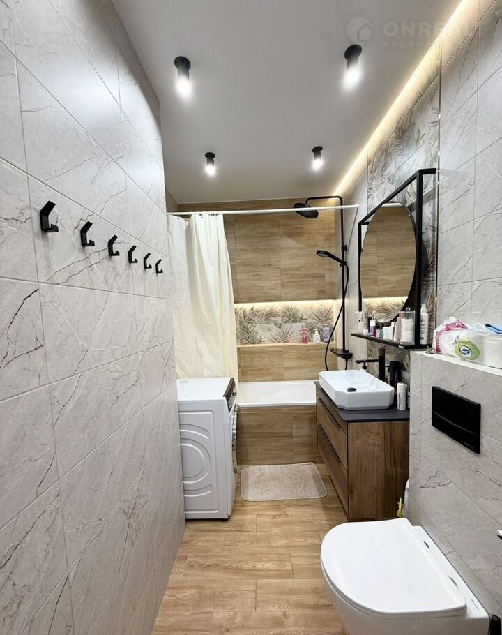 · Ванная: Подвесной унитаз с инсталляцией, тумба со столешницей из керамогранита.