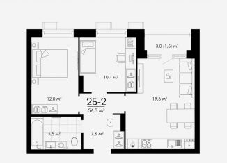Продажа 2-комнатной квартиры, 56.3 м2, улица Бехтерева, 12/4