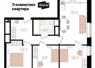 Общая площадь: 64.3 м2
