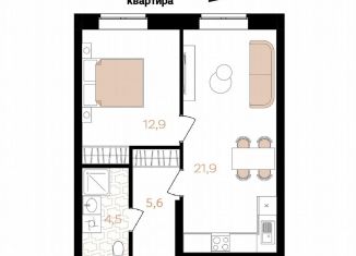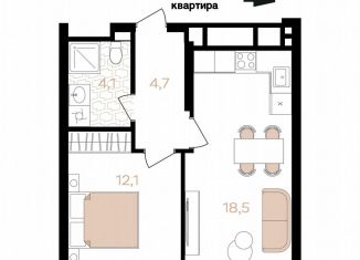 Однокомнатная квартира на продажу, 42.4 м2, Аршанский переулок, 4