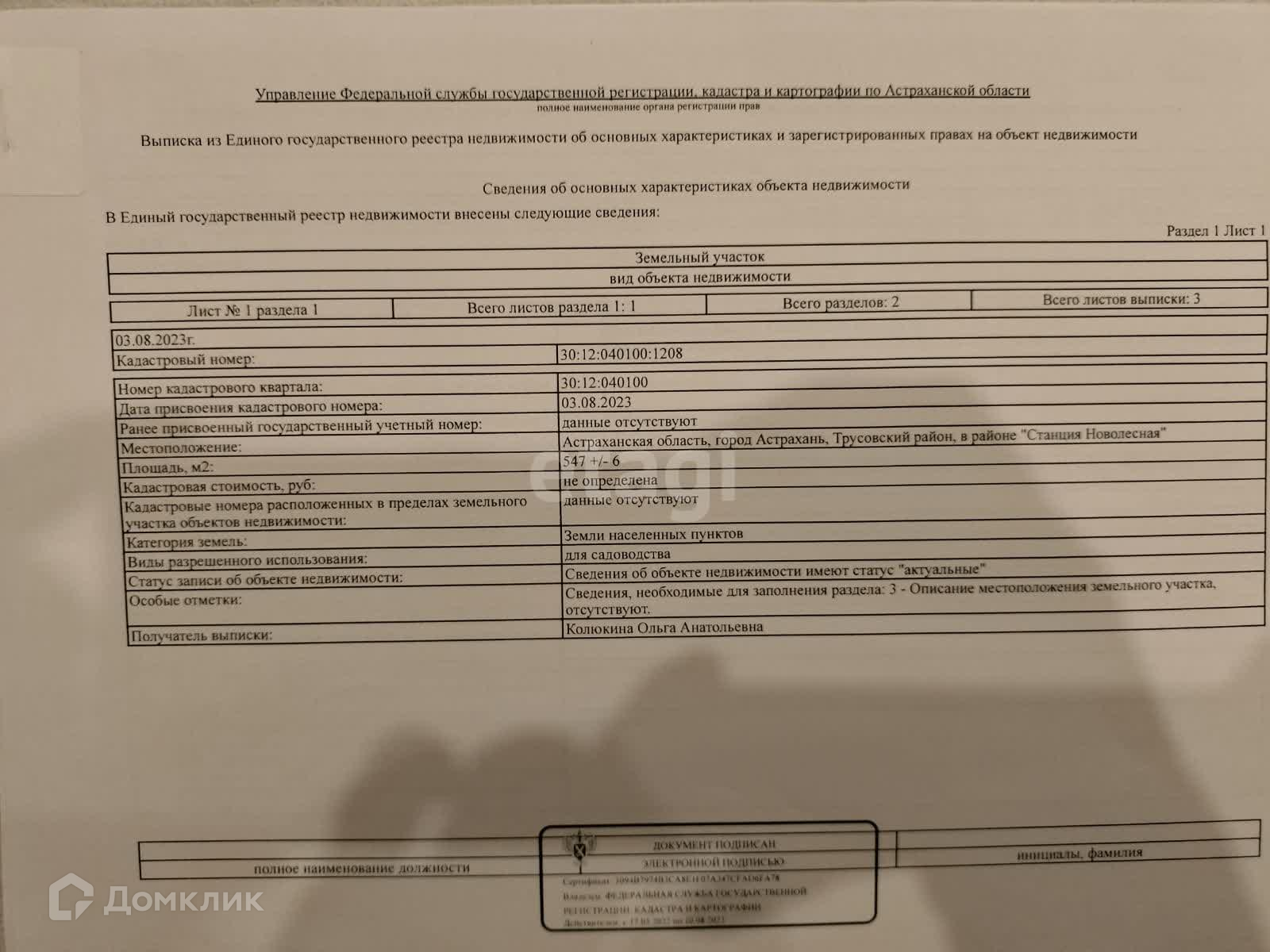 Продаётся 2 смежных участка р-н Трусовский в районе Станция Новолесная. Кадастровые номер: 30:12:040100:1209