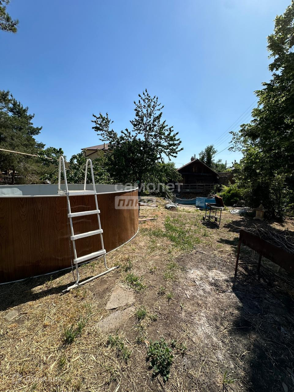 На участке расположена действующая баня(сруб), открытый пруд и 2 кирпичных гаража. Участок огорожен забором из дикого камня. Автоматические ворота.