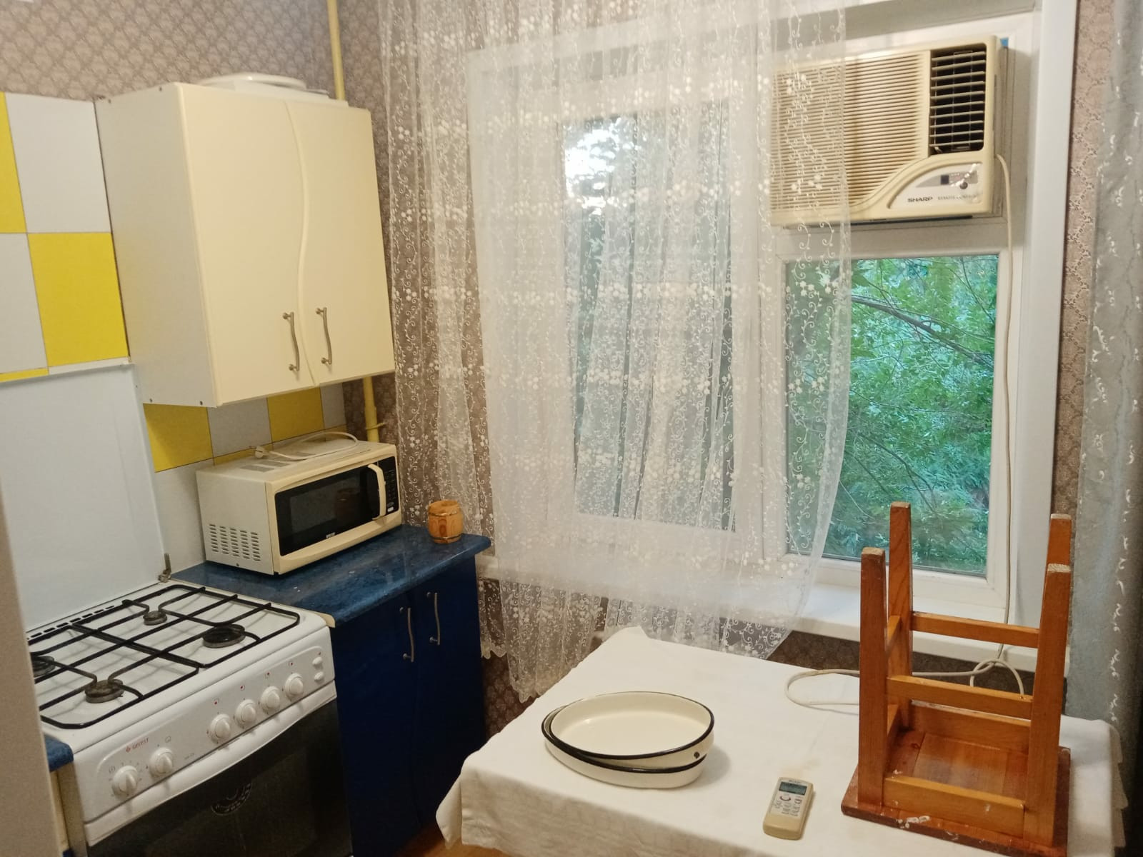 Квартира сдаётся на долгий срок, без животных. Можно семье или девушкам студенткам.  В квартире есть стиральная машинка, холодильник, кондиционер, диван, кровать, микроволновка, стол, стулья, сушилка