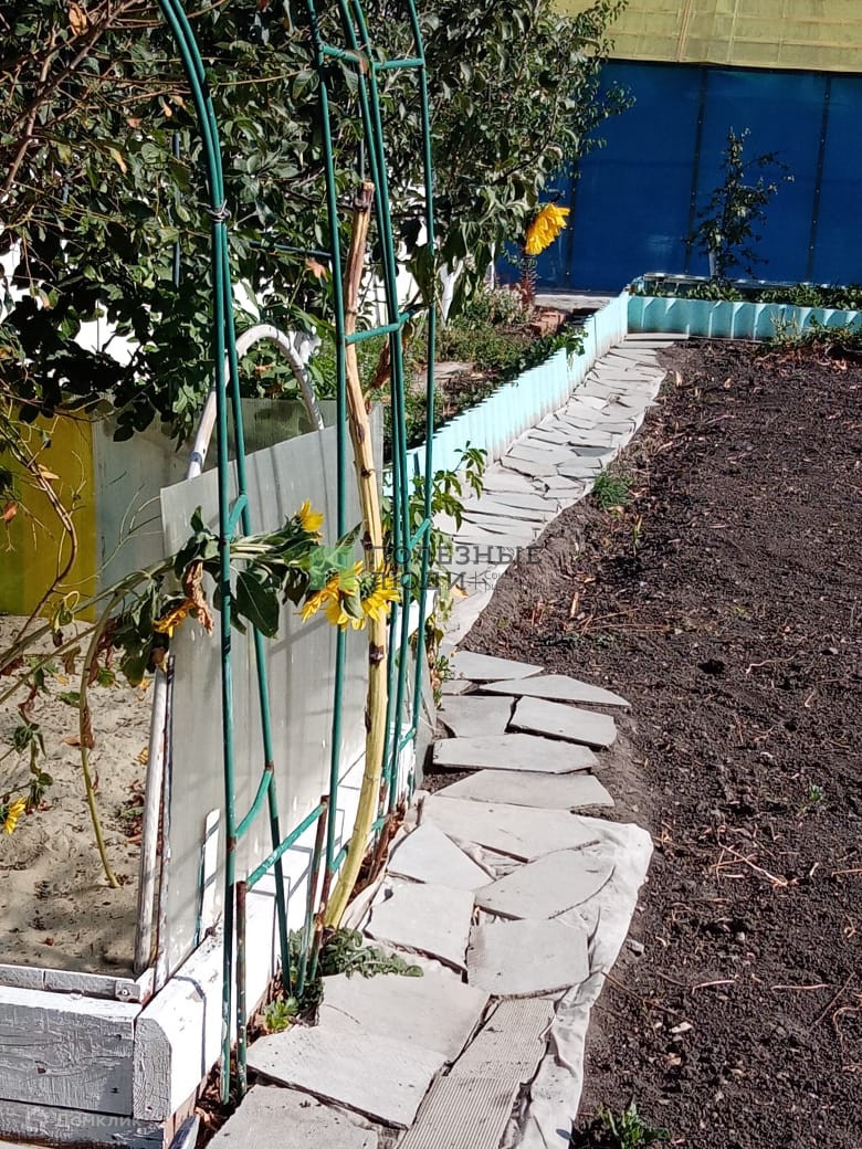 Участок весь ухоженный и обработанный, с дорожками из брусчатки, есть мангальная зона, газон, много плодовых деревьев, многолетние растения, цветы. Полив дождевой проложен по всему участку.