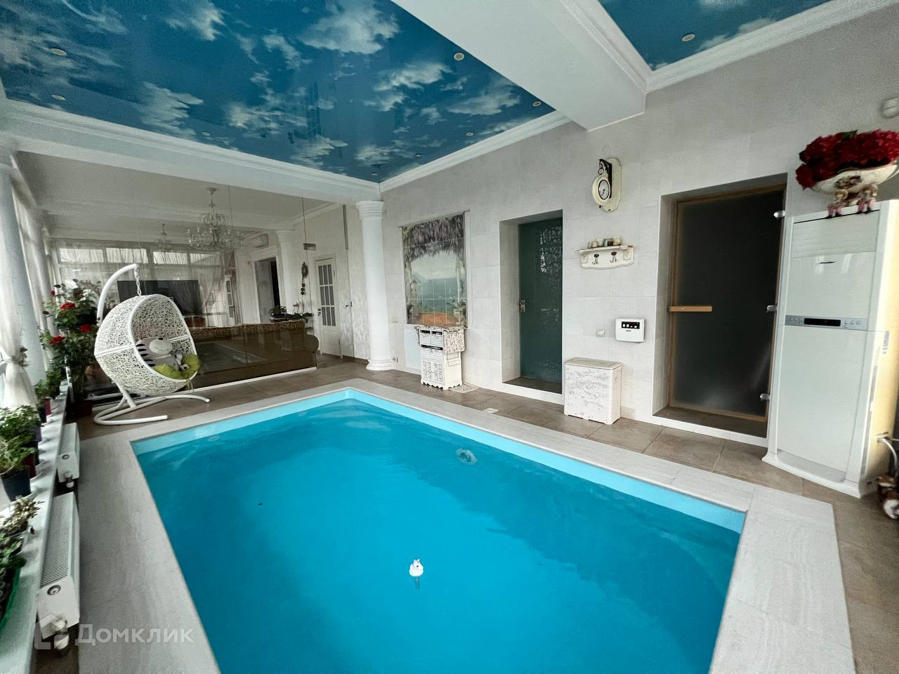 Собственная сауна с боссейном и гостинной.
