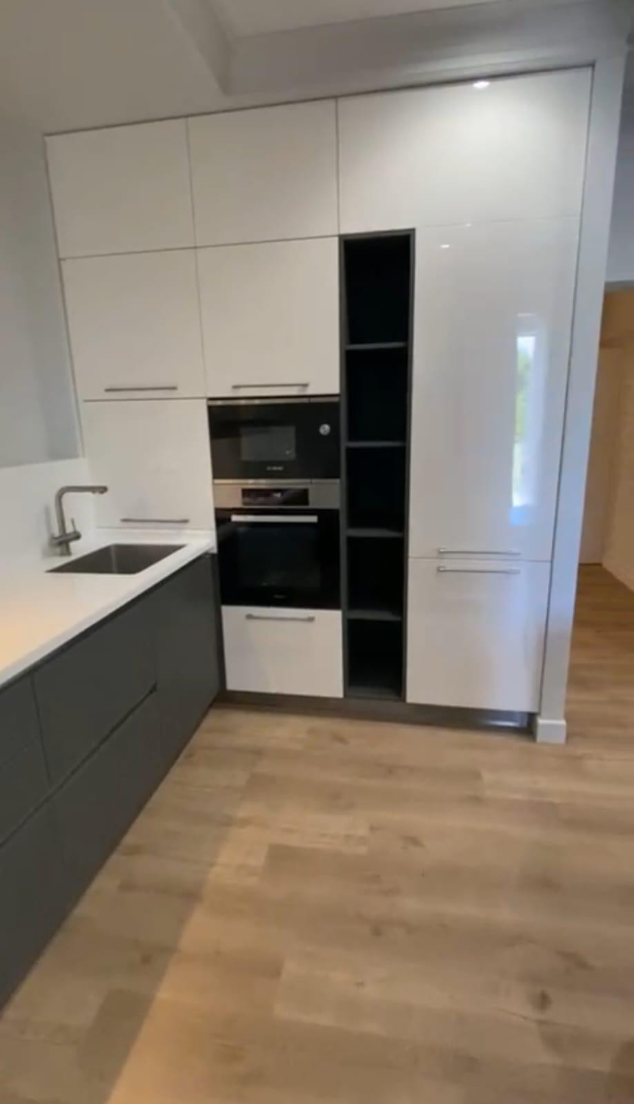Ремонт выполнен по дизайн проекту, на полу итальянский кварц винил, потолки из гипсокартонна с нишами для штор. Кухня и гардеробная комната под заказ фирмы Giulia Novars, Встроенная техника Miele (холодильник, духовой шкаф, стиральная, сушильная и посудомоечная машинки, варочная панель индукционная), вытяжка Jetair, микроволновая печь Bosch, газовый котел Vaillant, мебель и шторы Шторы & More.