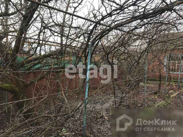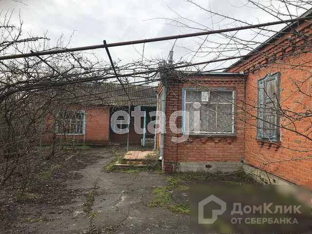 На участке есть кирпичный дом 88,8м2. Двор дома засажен виноградником, плодовыми деревьями и орехом фундуком. Дом с двумя выходами, в доме 5 комнат, отапливается газом, в доме требуется ремонт. Во дворе построена отдельно летняя кухня, за домом расположены хоз. постройки, гараж.