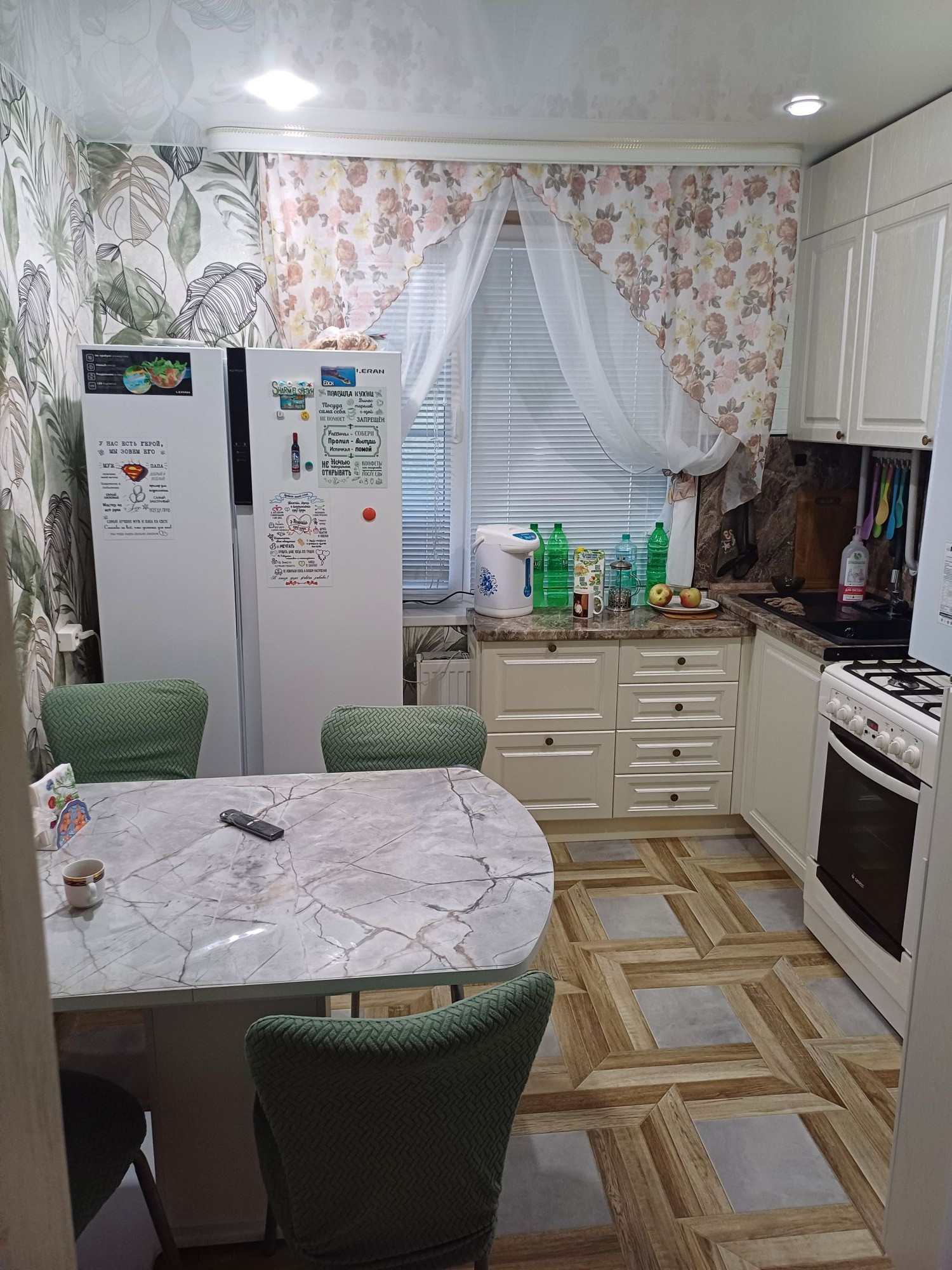 продаётся 3х комнатная квартира в а Хатукай ,уютная теплая,свое отопление,новые трубы,сделан ремонт ,интернет,встроенная кухня остаётся новым хозяинам,частично мебель,балкон лоджия застекленная,придомовая территория ,гараж,сарай,огород 5 соток,новая входная дверь,в квартире есть все необходимое для того чтоб зайти и жить