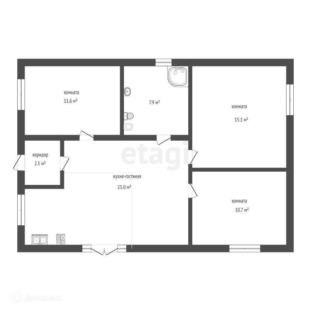 Общая площадь 72.8 м2