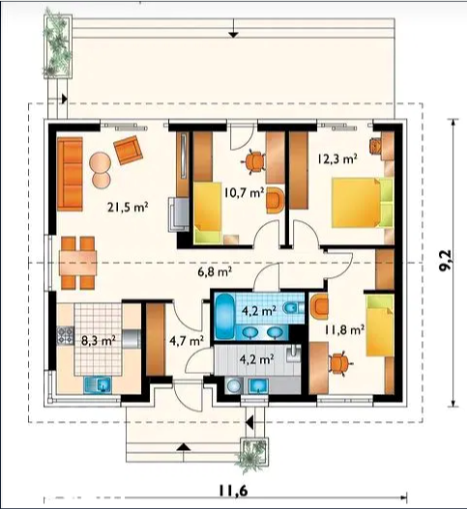 Общая площадь 90 м2