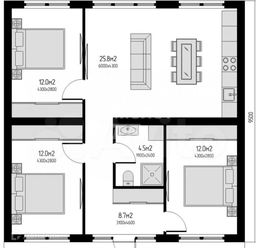 Общая площадь 93 м2