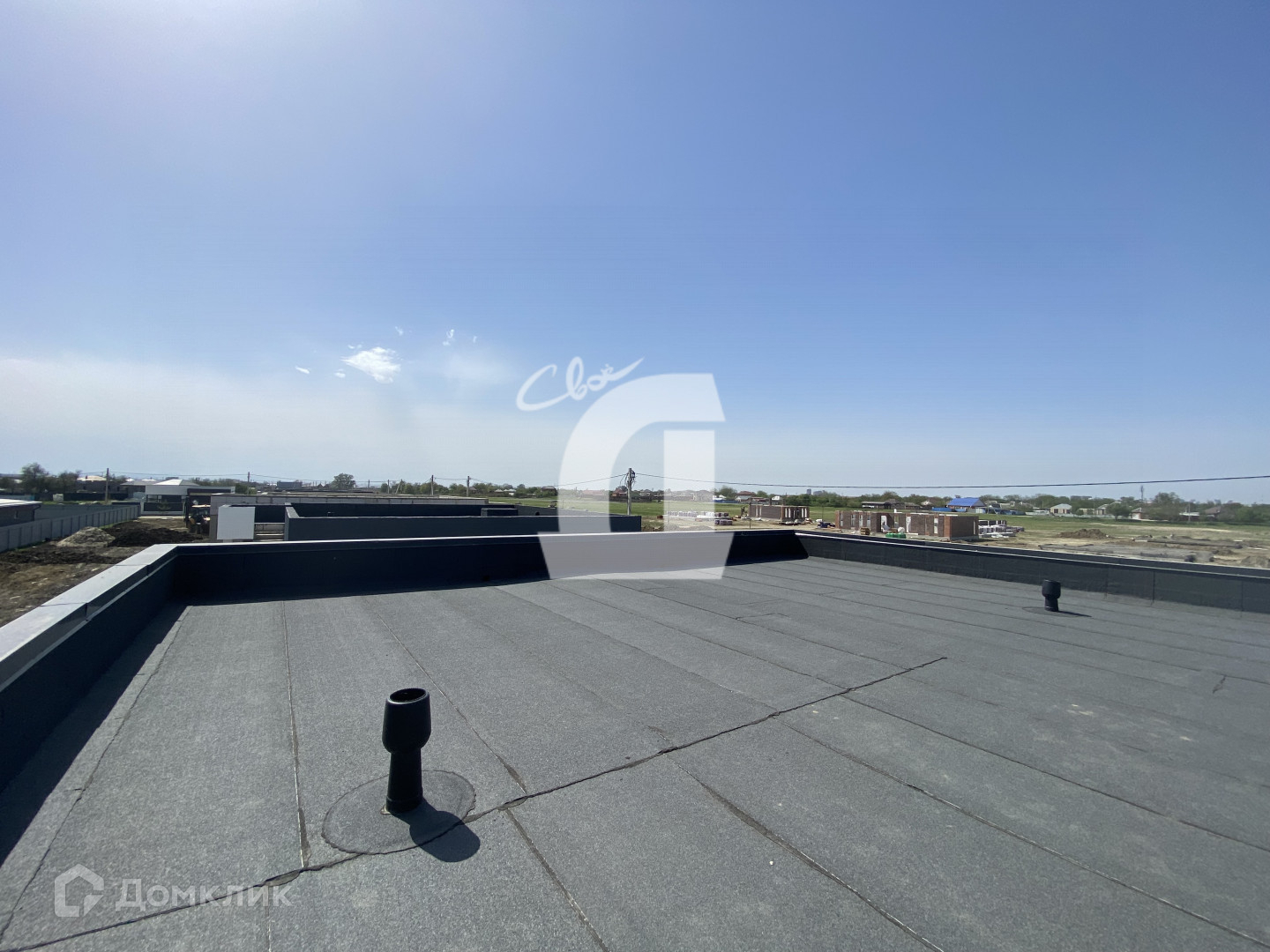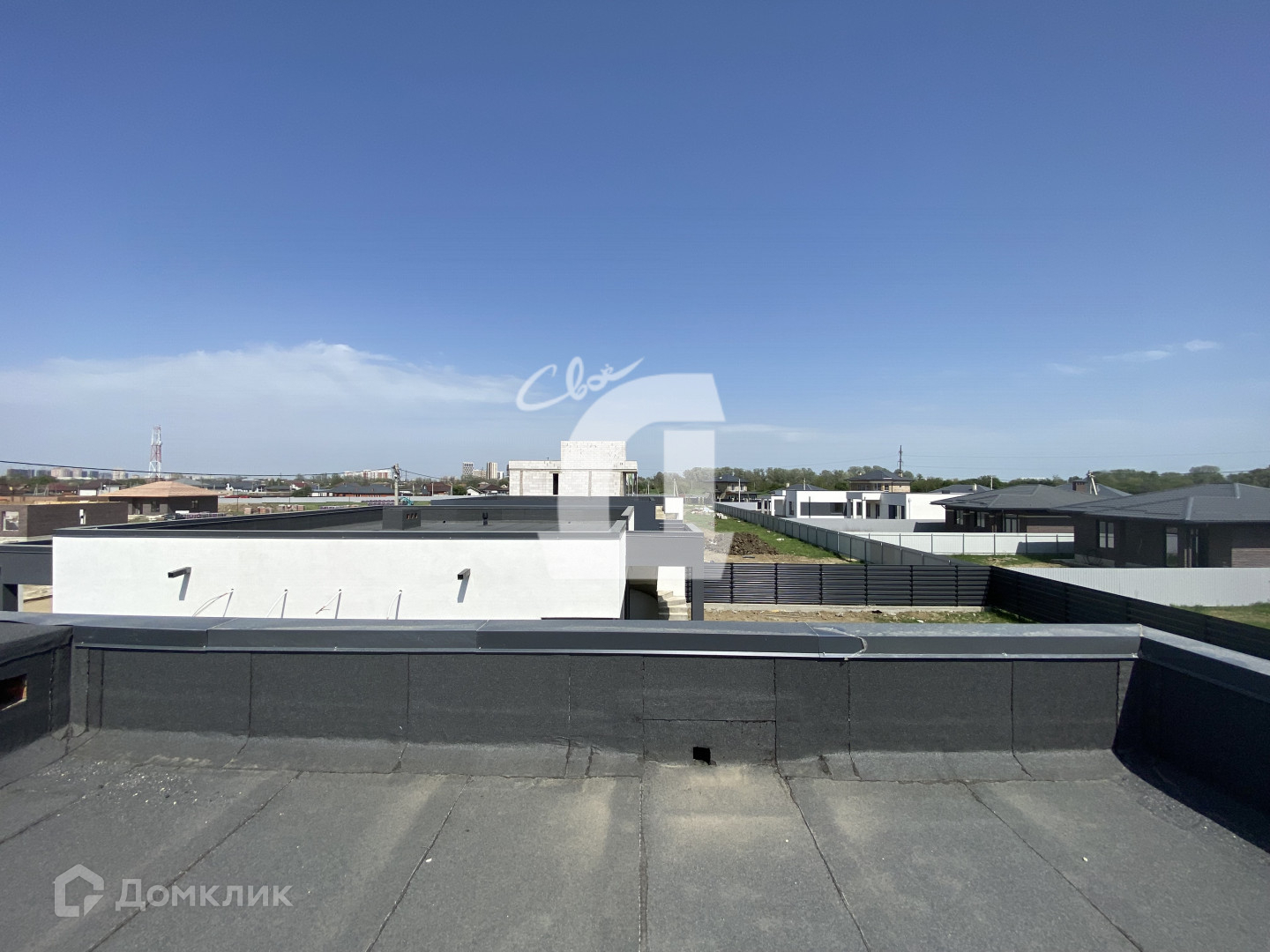 На крыше коттеджа можно поставить небольшой каркасный бассейн, лежаки, разбить зону барбекю и отдыха. Плюс открывается шикарный вид на весь поселок.