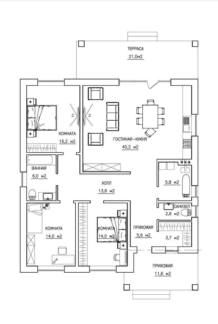 Площадь дома 154 м2
