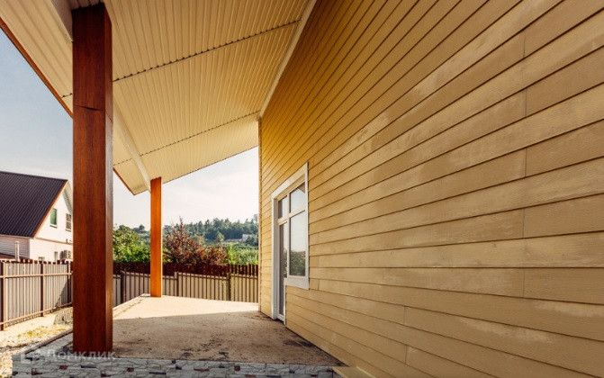 Фасад дома выполнен из ФСП (фибро-цементная плита )