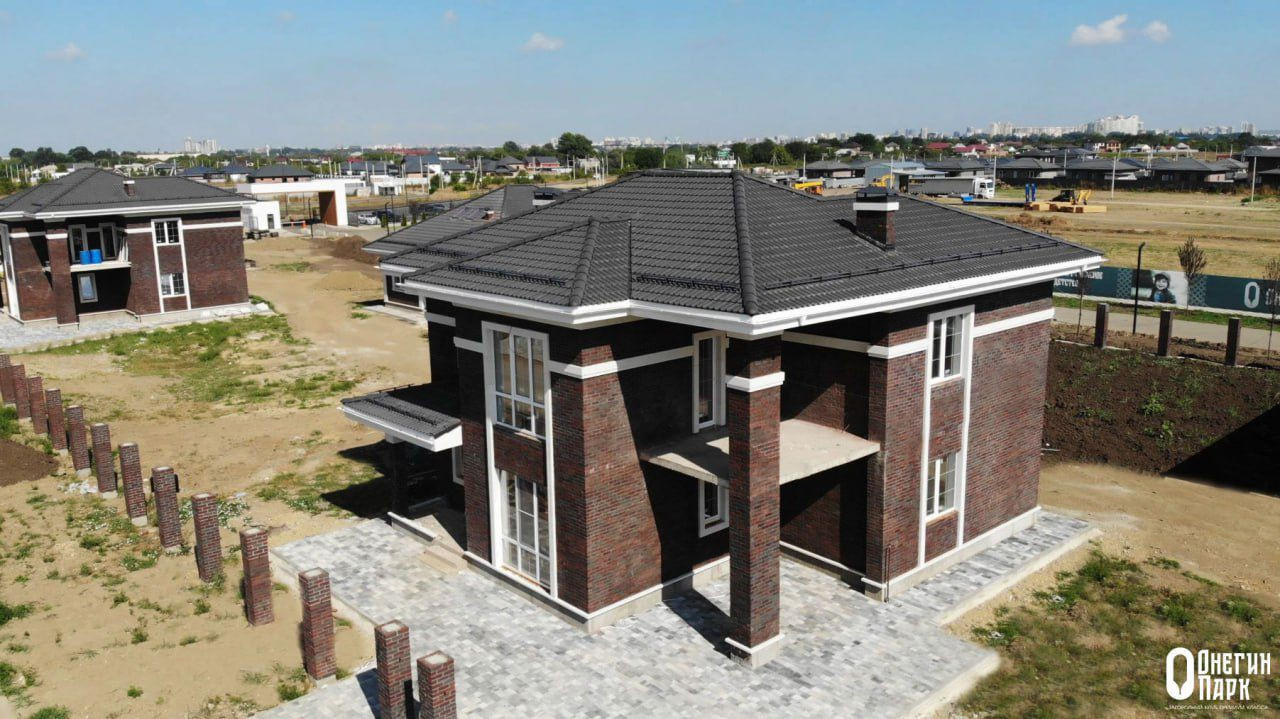 - дом построенный полностью из кирпича, облицован кирпичом ручной формовки, крыша из натуральной черепицы фирмы Браас.