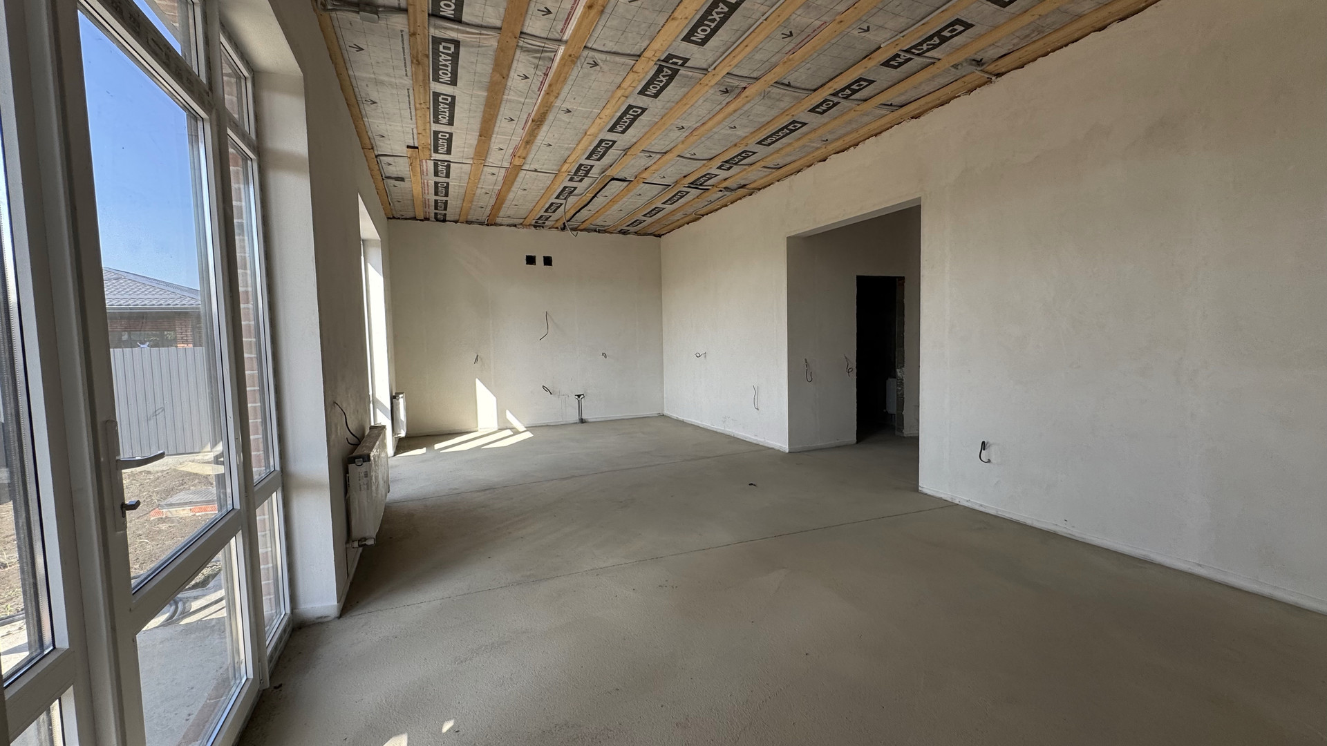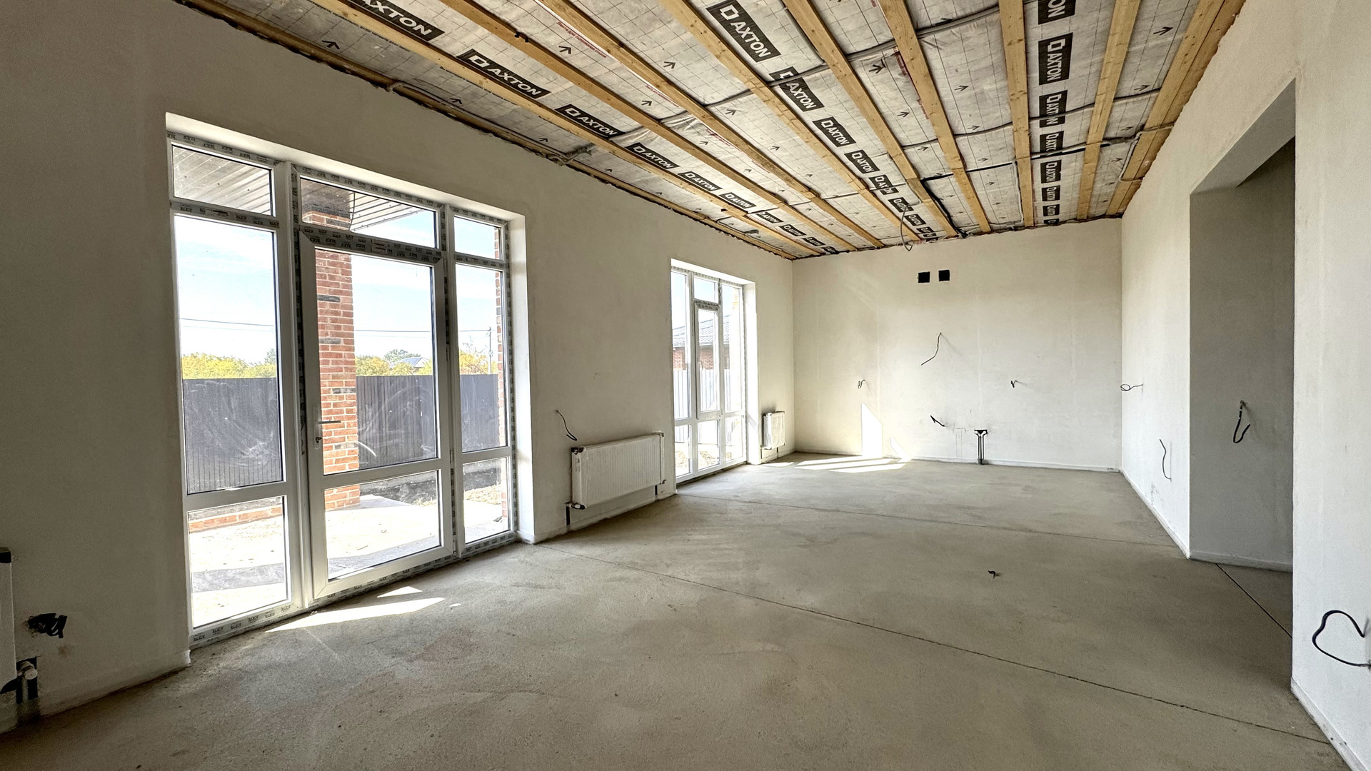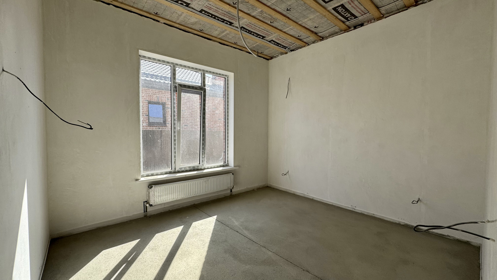 В доме выполнена предчистовая отделка: стяжка пола, штукатурка, разводка сантехнического, электрического и отопительного оборудования, двухконтурный котел, радиаторы отопления.