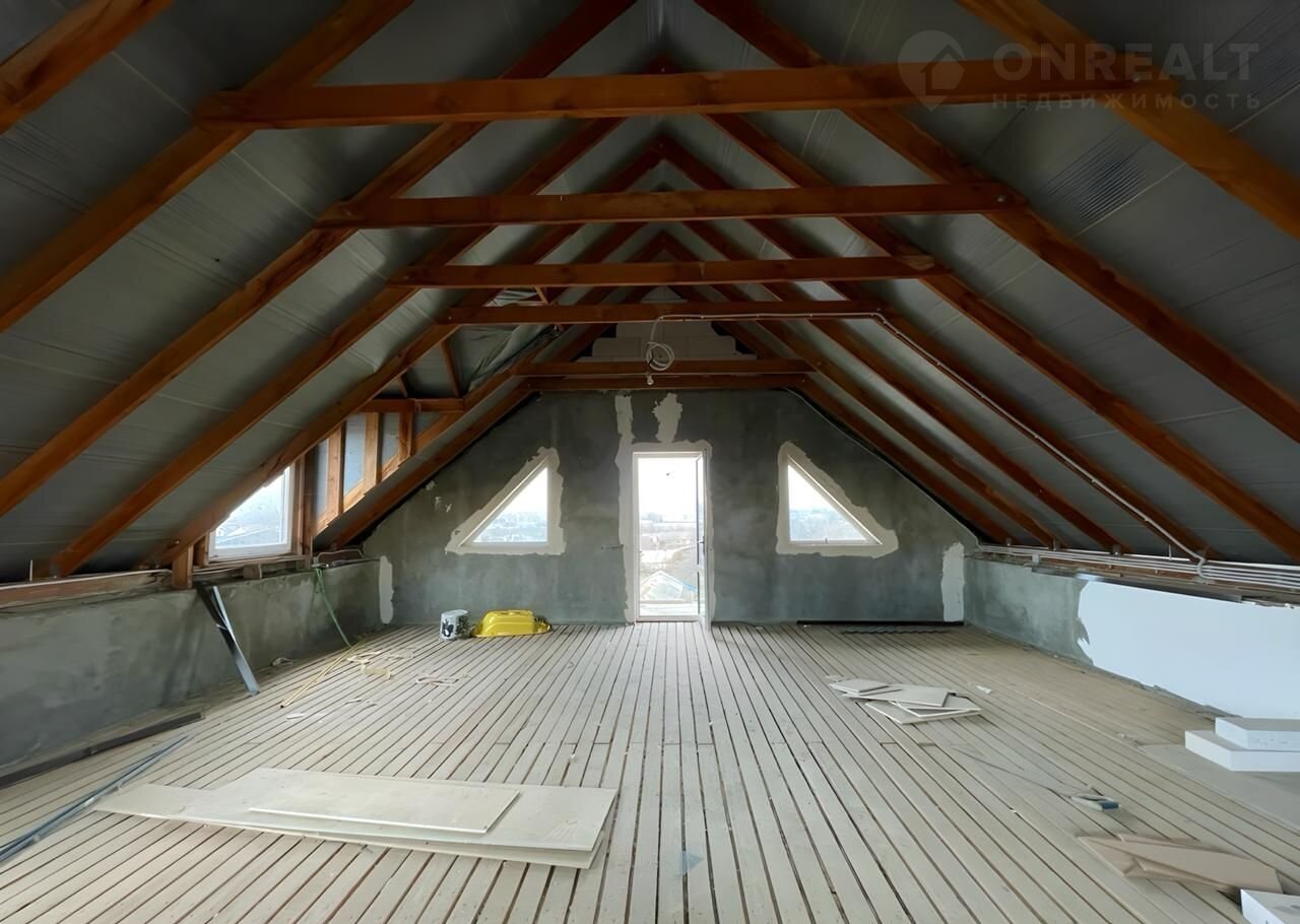 На первом этаже везде теплый пол большая гостинная 30 м2, кухня 14 м2 выход из кухни во двор прямо в мангальную зону, так же на первом этаже расположен санузел, выложен керамогранитной плиткой. На втором этаже 3 спальни 25, 16, 12 м2, из есть выход на балкон, в одной из них просторная гардеробная. На третьем этаже ПЧО, огромная одна комната, спокойно можно сделать ещё 2-3 просторных помещения, плюс просторный балкон.