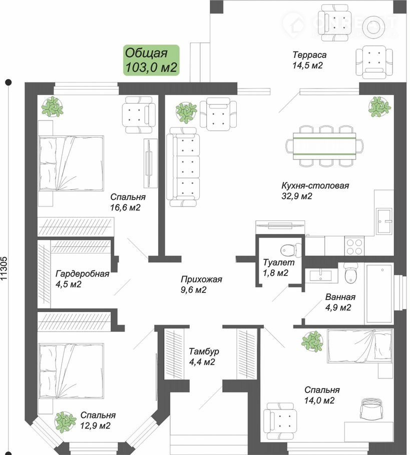 Общая площадь 106 м2