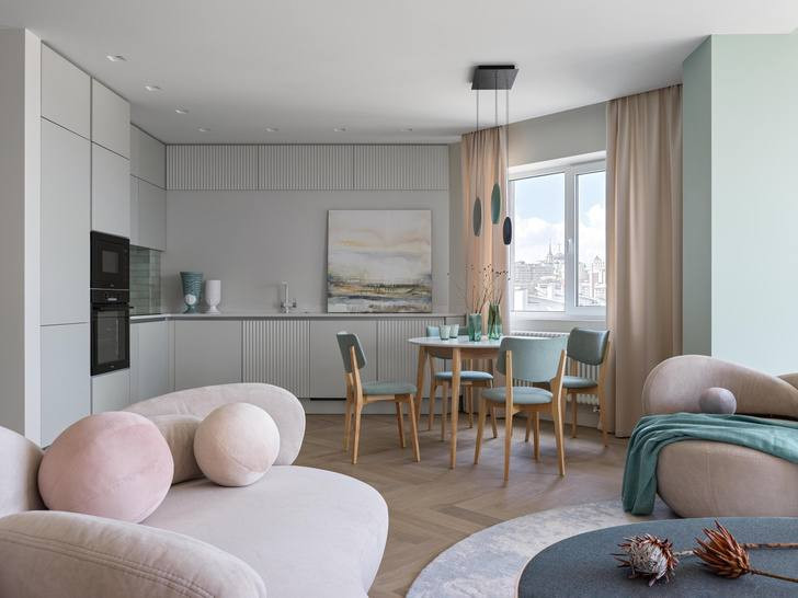 Планировка квартиры включает в себя: три изолированные комнаты (18,5м², 15,5м² и 11м²), светлую кухню (12м²), раздельный сан. узел, просторный коридор и лоджию. Высота потолков 2,8 метра.