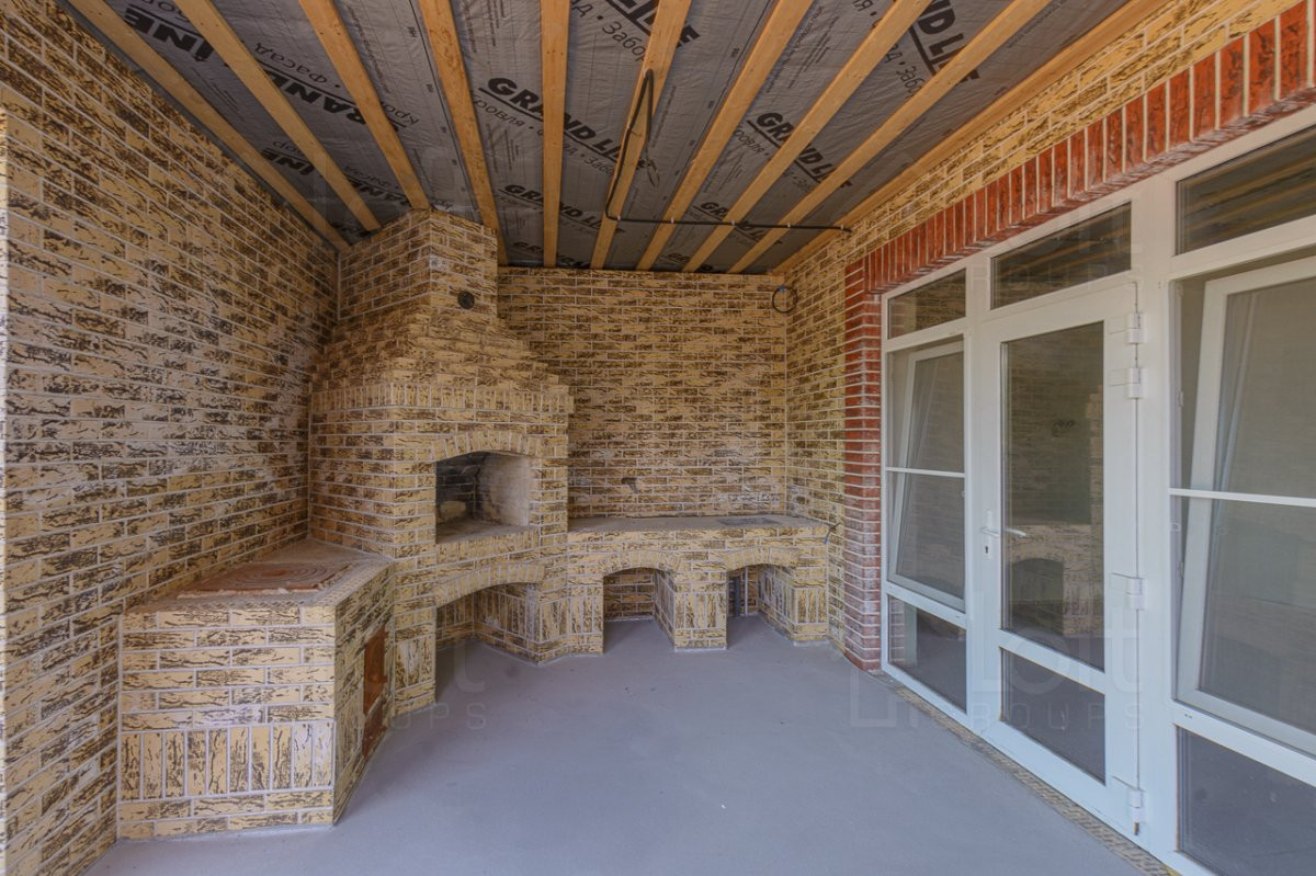 Продам шикарный новый дом 2022 года постройки, в тихом месте . Дом построен по индивидуальному проекту, соблюдены все технологии строительства, общей площадью 190 кв.м. 4 спальни, просторная кухня-гостиная 31,7 кв.м. с выходом на зону барбекю , 3 санузла, 2 гардеробные. Теплые полы. Потолки 3 метра. Полная предчистовая отделка (оштукатуренные и прошпаклёванные стены под обои, разводка электрики по всему дому, стяжка полов по всему дому) Просторная зона барбекю с очагом выполненным из шамотного кирпича . Кованные ворота. Земельный участок облагорожен, двор вымощен тротуарной плиткой, оборудован удобный въезд и зона парковки. Двойной-глубокий септик. Электричество 15 кв. Газ, газовый котел +бойлер . Участок 7,5 соток. Рядом школа, магазин. Очень комфортное место для жизни.