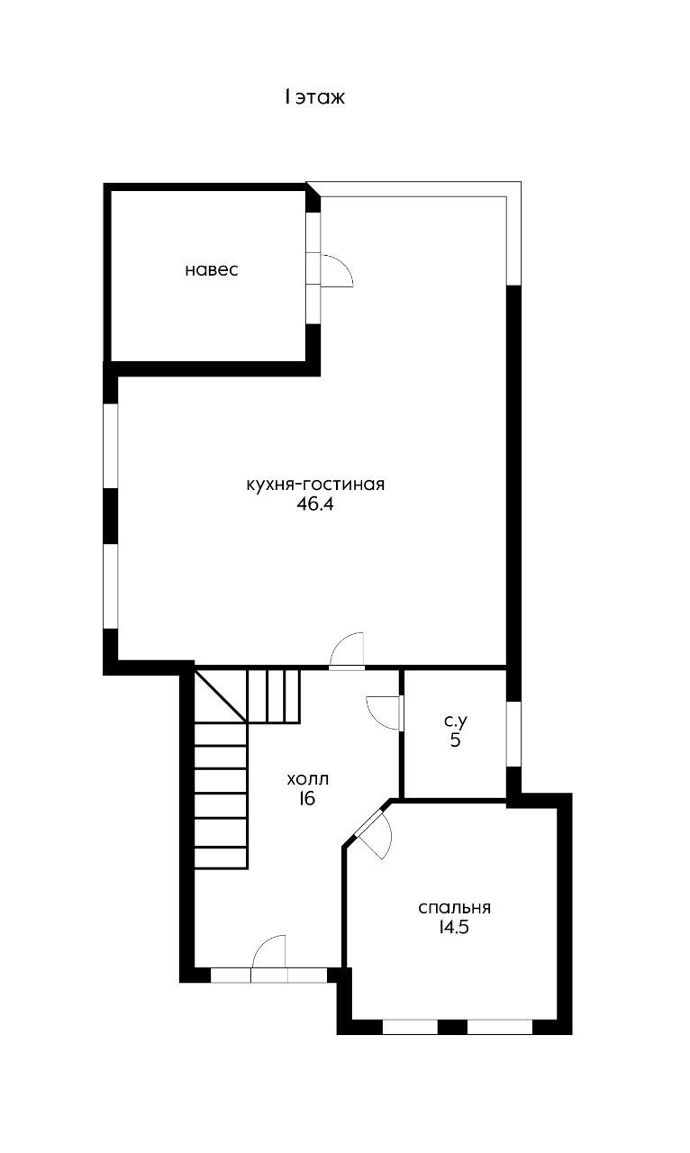 на первом этаже расположена мечта хозяйки — кухня-гостиная 46 кв.м. с выходом на террасу, просторный холл, ванная комната, изолированная спальня и вместительная кладовая;