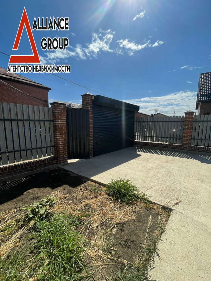 Во дворе дома залиты бетонные дорожки и площадка под заезд автомобилей, установлен современный и стильный забор, ворота с электроприводом и калитка.