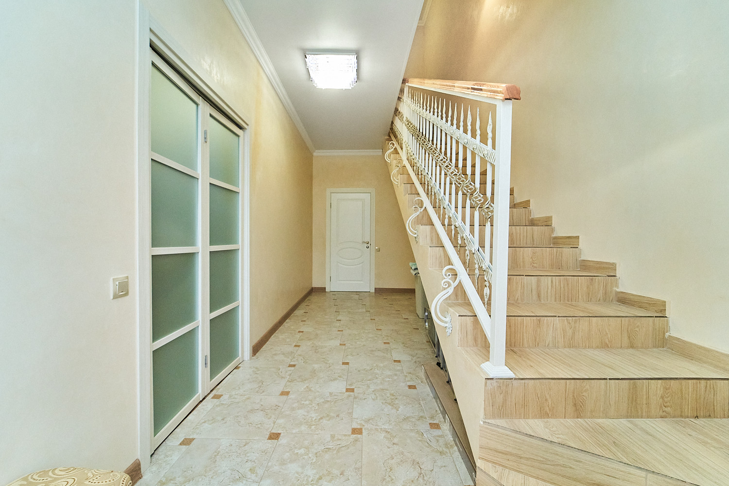 Новый ремонт - натяжные потолки, межкомнатные двери отличного качества, ламинат, плитка в санузле.  Дом с газом, весит автоматический двухконтурный котел. Мебель остается частично, по договоренности.