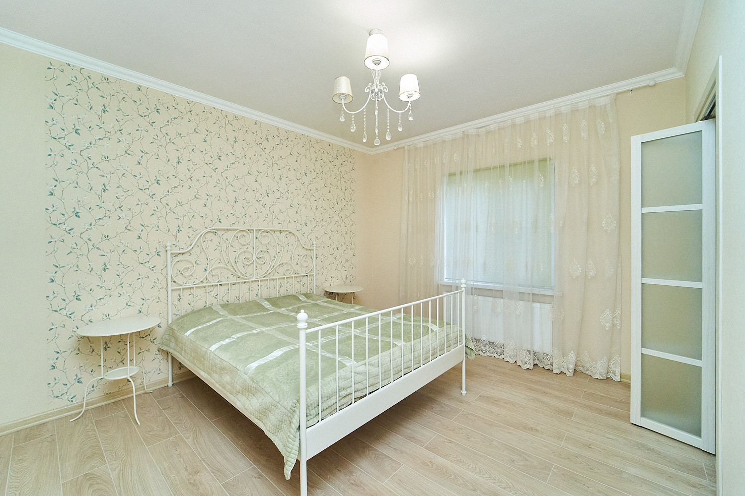 Новый ремонт - натяжные потолки, межкомнатные двери отличного качества, ламинат, плитка в санузле.  Дом с газом, весит автоматический двухконтурный котел. Мебель остается частично, по договоренности.